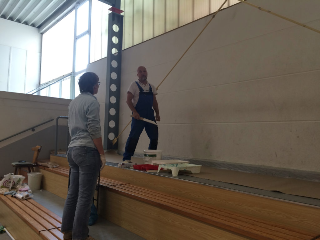 Gesagt getan, im Oktober 2015 haben wir die Pinsel geschwungen und die (nicht mehr ganz so) weißen Wände in der Hockeyhalle mit einem zünftigen Anstrich versehen. Jetzt weiß auch jede Gastmannschaft wer hier die Heimmannschaft ist 😉